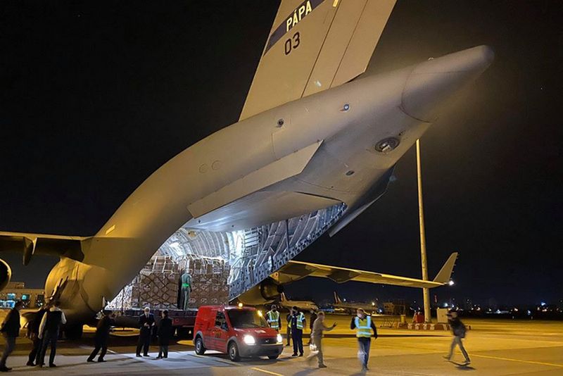 Екипажът на самолета, с който пристигнаха медицинските материали, се състои от 14 военни - шестима от САЩ, двама от Нидерландия и по един от Швеция, Финландия, Полша, Норвегия, Румъния и България. Командир на полета бе капитан Жасмина Христова от българските Военновъздушни сили. Тя приземи и самолета С-17 "Глоубмастър", отбелязват още от Външно.