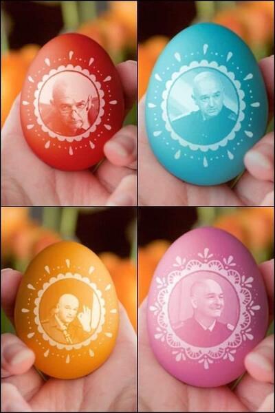 Мания са и великденски яйца с генерала, с който по неволя се буди всеки ден българският народ. (А понякога и заспива - например при случая от четвъртък, когато в 23 ч бе съобщено, че след час София ще бъде блокирана, явно с мисъл да нямат време за реакция тарикатите).