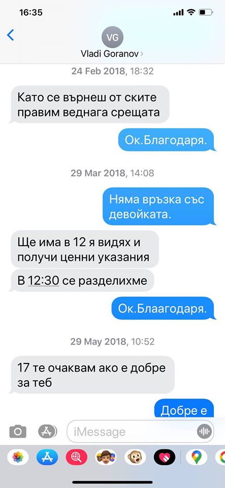 На профила във фейсбук Vassil Bozhkov бяха разпространени скрийншотове от разговори, на които пише, че събеседникът е Vladi Goranov (точно по този начин - на галено, б.р.)