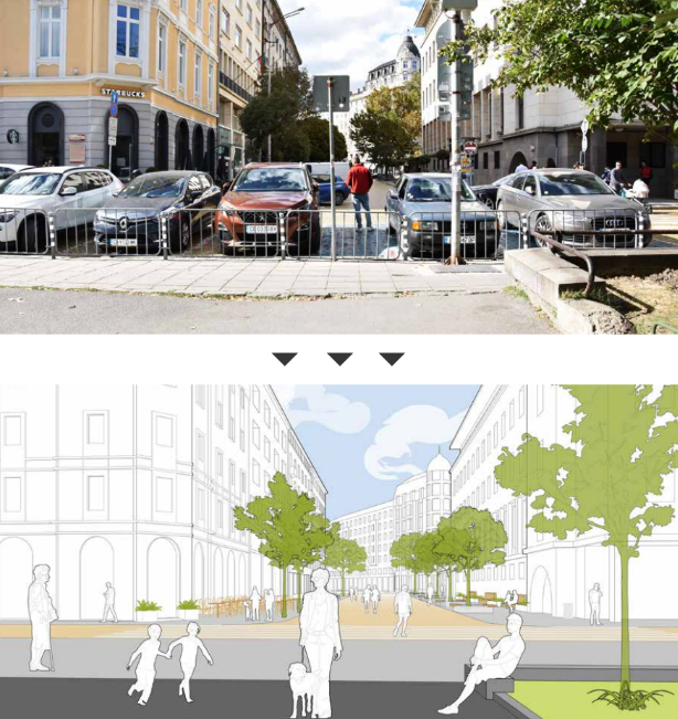 По време на пресконференцията бяха показани и визуализации на бъдещия изглед на улицата. Участниците обясниха, че са взети предвид и нуждите на бизнеса и живущите, и именно затова част от улицата ще остане отворена за преминаване на автомобили.