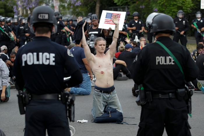 "Не можем да позволим справедливите възгласи на мирните протестиращи да бъдат заглушавани от разярена тълпа", каза американският президент. Той добави, че Щатите се намират в хватката на "професионални анархисти".