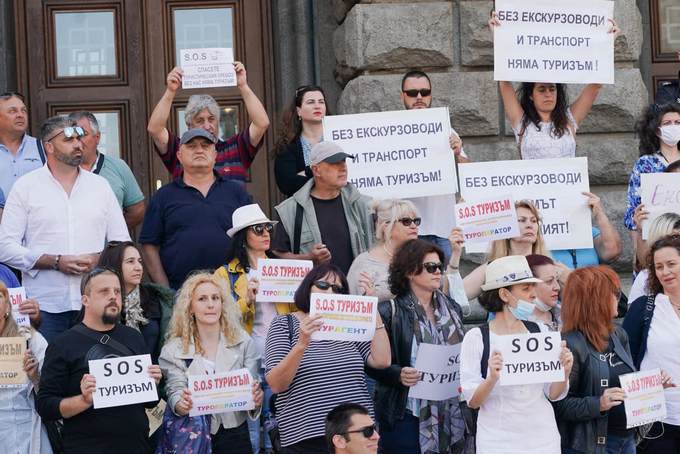Част от туристическия бранш - туристически превозвачи, туроператори, гидове и хотелиери протестираха днес прозорците на Министерския съвет. Причината - недостатъчната, ненавременната и неадекватната помощ, която държавата оказа или не оказа на бранша през месеците на тежко финансово изпитание заради епидемията от коронавирус.